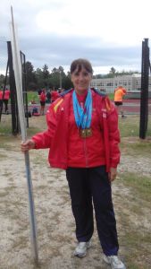El domingo, día 28 de mayo, celebramos en Ourense el campeonato gallego de veteranos al aire libre. Pese a la falta de entrenamiento y de competiciones, las pruebas en la que tomé parte no salieron mal (en la foto con las tres medallas de oro). En peso, mejor de lo esperado; la jabalina bieny en disco podía haber hecho algo más, pero el retraso en empezar la prueba (una hora), que eramos más de 15 lanzadores y con solo dos artefactos, me hicieron abandonar en el segundo intento. Aun asi estoy contenta con la marca. La rodilla respondió bien, parece que el tratamiento de ortokine ha funcionado un poco. A finales de junio iremos a Elche con la intención (como siempre) de mejorar.