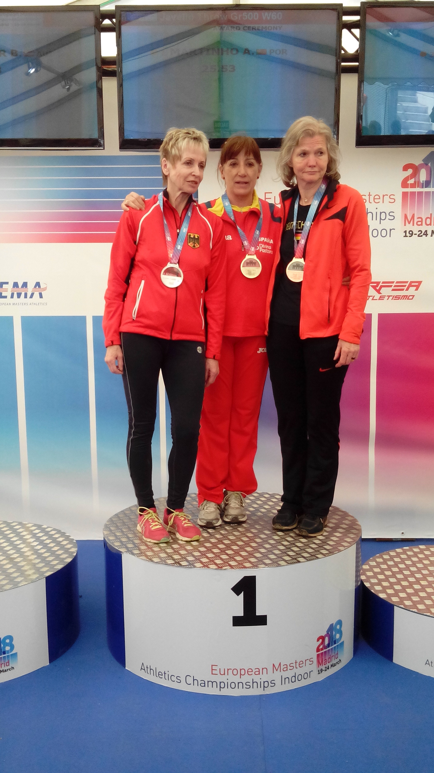 IMG_20180324_132846 marzo 26, 2018 1440 × 2560 Cto. Europa Masters PC Madrid 2018 Podium lanzamiento de Jabalina, con Kristina Hanke y Marianne Schumacher.